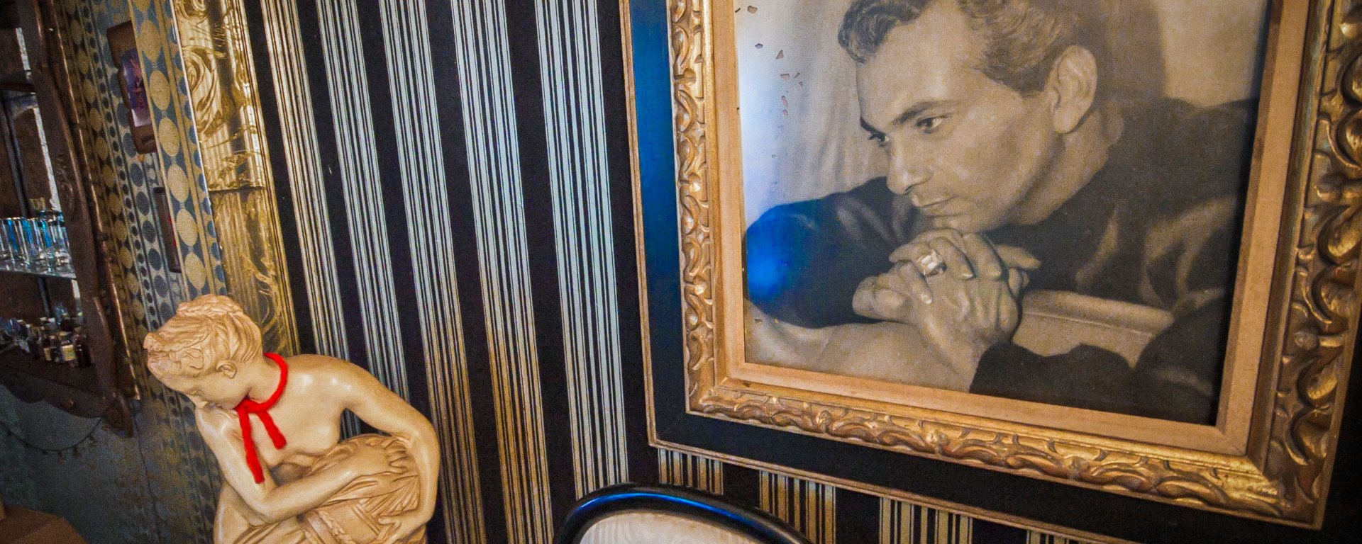 The colorful photographs in Julio’s House show us extravagant, Liberace-inspired interior living spaces within a modest Miami house. We see scenes of a very personal setting, but devoid of people. The only people shown in the book are in vintage photographs taken of Orestes Gonzalez’s uncle Julio, his uncle’s friends and lovers, and his life as a cruise ship entertainer. Julio worked as a magician, tour guide and entertainer aboard a ship that took tourists between Miami and Cuba before Castro took power in 1958.