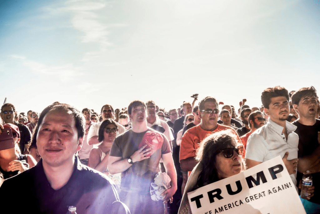 The visual narrative is presented in three ‘acts’ to highlight the histrionic sequence of events. Act I begins with photographs made shortly before the 2016 presidential election, focusing on ordinary Americans in battleground states in the U.S. Midwest, a combination of rural areas and Rust Belt towns where many voters were drawn to Trump’s nativist and anti-establishment message. Butow notes, “They reflect the part of America that is often the pivot point in national elections and one that has not fared well in the country’s economic and cultural shift toward the coasts.”