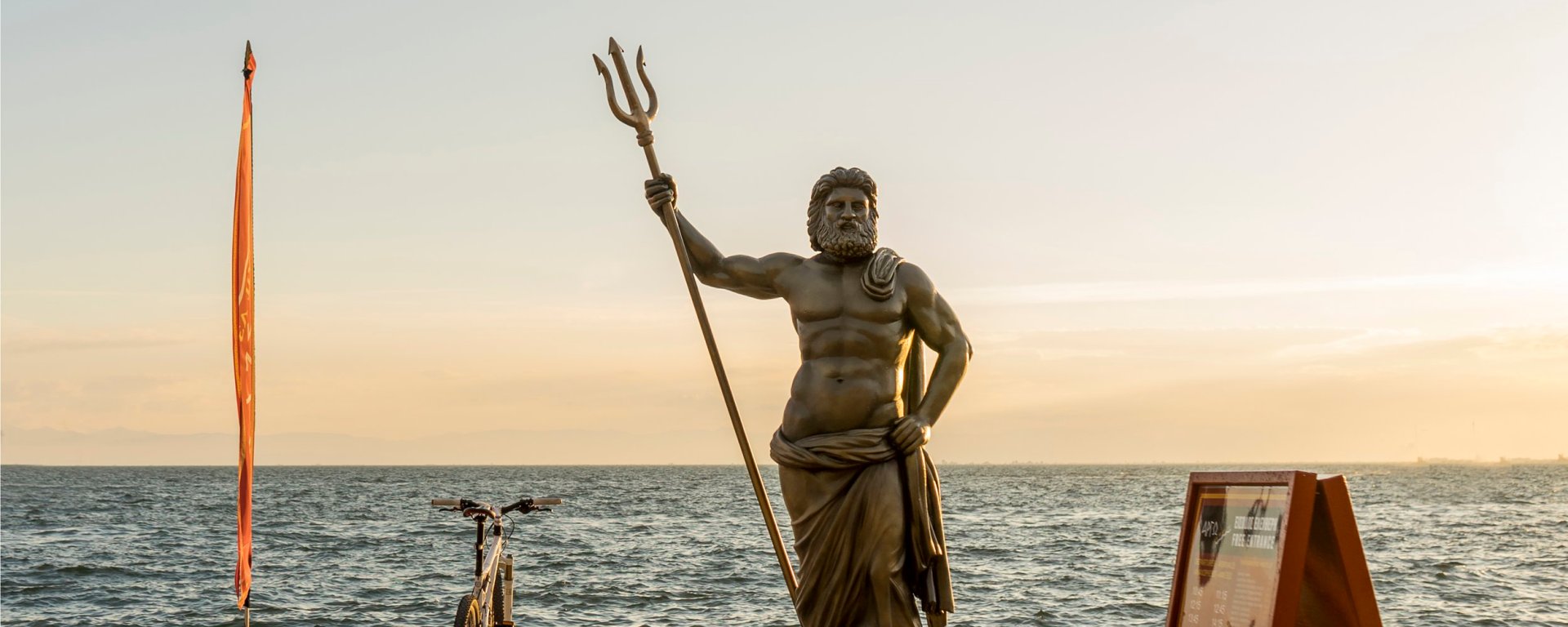 Throughout these reconstructions which mime ancient monuments and statues, one can witness the marching of representations of popular emblems, as well as symbols that, due to the recent political developments regarding the name of North Macedonia, became objects of quarrel. In these images, surrounded by square frames and despite their strictness, one can witness the playful, even ironic, mood of the photographer.