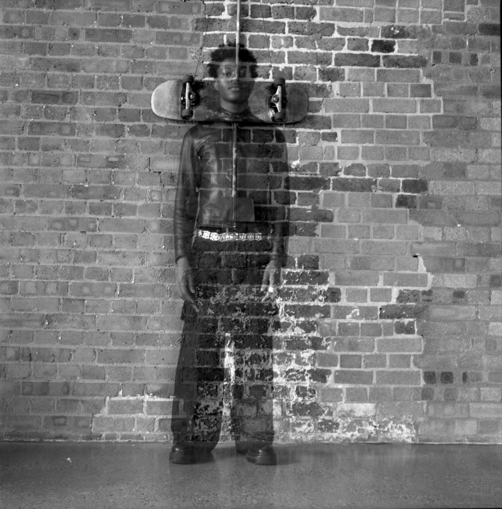 Praxis participants attended workshops facilitated by The Line and the artist. Using a symbolic object – something that represents them, for example their country of origin or their life in London – the participants created self-portraits with polaroid cameras. During this process, they talked about their chosen objects, enabling a sharing of life experiences. Amouzou then photographed the participants with their objects in a studio setting, using her signature style of overexposure and movement, to create the resulting images. All six photographs on public display are analogue – presented without digital enhancement or alteration.