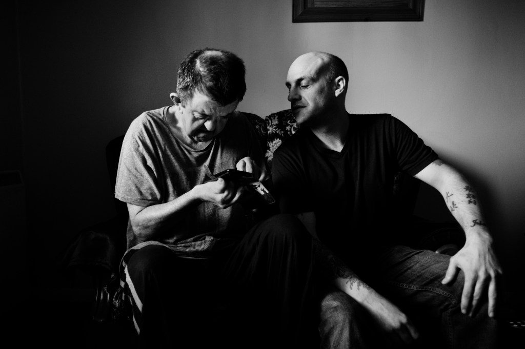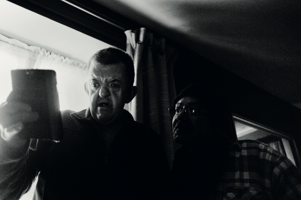 For more than twenty years, Mortram has worked within the same small geographic radius in Dereham, Norfolk, building a body of work shaped not by access or mobility, but by proximity and time. What began as a practical limitation, his role as primary carer for his mother, which kept him close to home, became the foundation of a creative practice rooted in long-term presence. Within that tight radius, he found what he has described as an “organic network” of lives lived under pressure – people negotiating disability, grief, mental illness, economic peril, and the daily balancing act required simply to get to the next day.