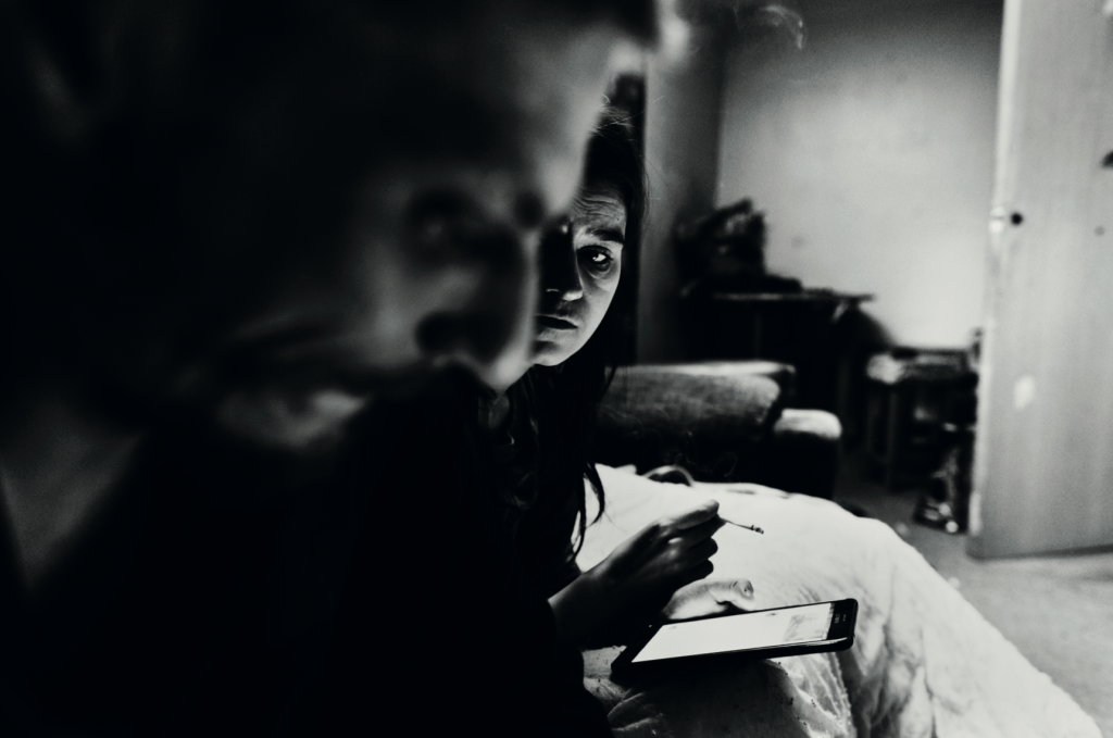 These photographs are inseparable from conversation. Mortram’s practice is built on listening, and the images go hand-in-hand with first-person testimony offered in participants’ own words. The people pictured are not presented as case studies or symbols; they are collaborators in the shaping of how their lives are represented. For a very long time, photography was perceived as a one-way medium. But recently we’ve seen how that power dynamic can be shifted, and how photography can be used as a tool to collaborate and communicate. Mortram’s camera becomes an effective tool in visualizing the invisible.